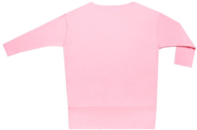 Приятная к телу. Рукав не совсем летучая мышь. Свободный крой, широкая резинка внизу хорошо держит. Брала бледно-розовую, цвет соответствует фото