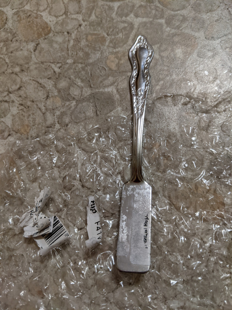 Этикетка магазина была приклеена прямо на саму лопаточку, а клей плохо отмыть