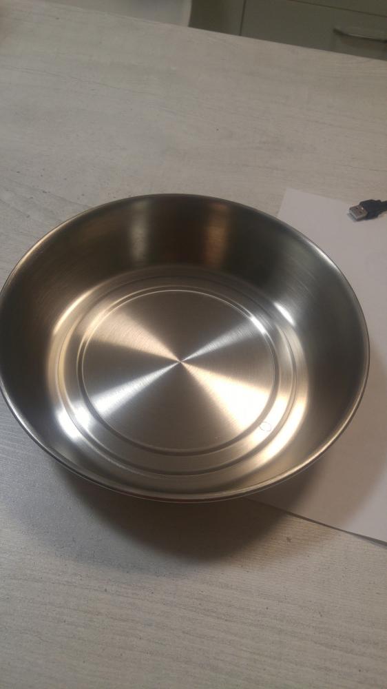 Отличная добротная миска, мне такой размер был нужен. Крепкая, с бортиками толщиной 3-4 мм. Вес 400 г