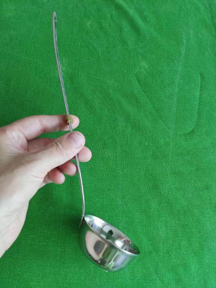 Купила для дачи,дома такая мамина,советская. Качество отличное,надеюсь, что прослужит долгие годы, ещё и по наследству перейдет. Можно переливать жидкости из банок,из кружек,для блинчиков как мерная ложка. Только пришлось повозиться со штрихкодом,налепили на черпак, отковыряла ногтем, липкость убрала ватным диском, смоченным раст маслом и вуаля! Есть дырочка для подвешивания. На ручке).