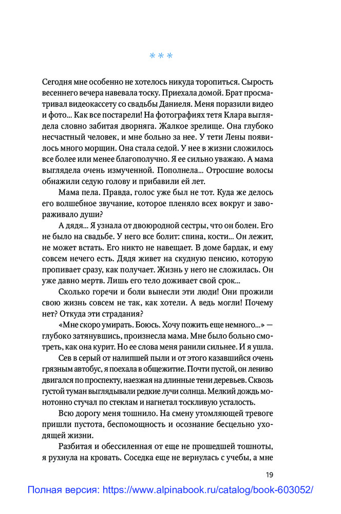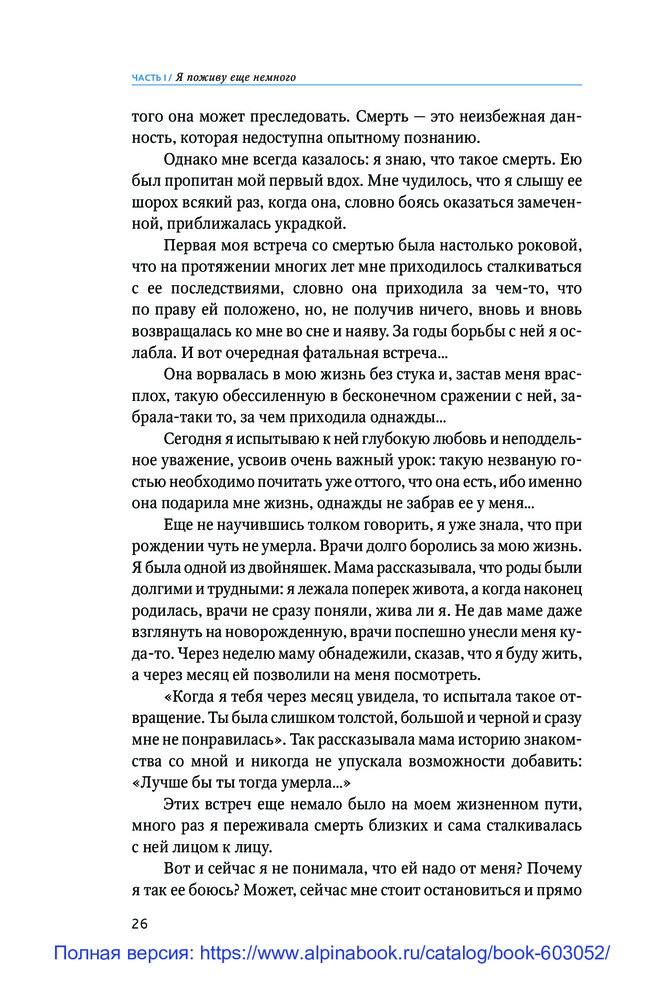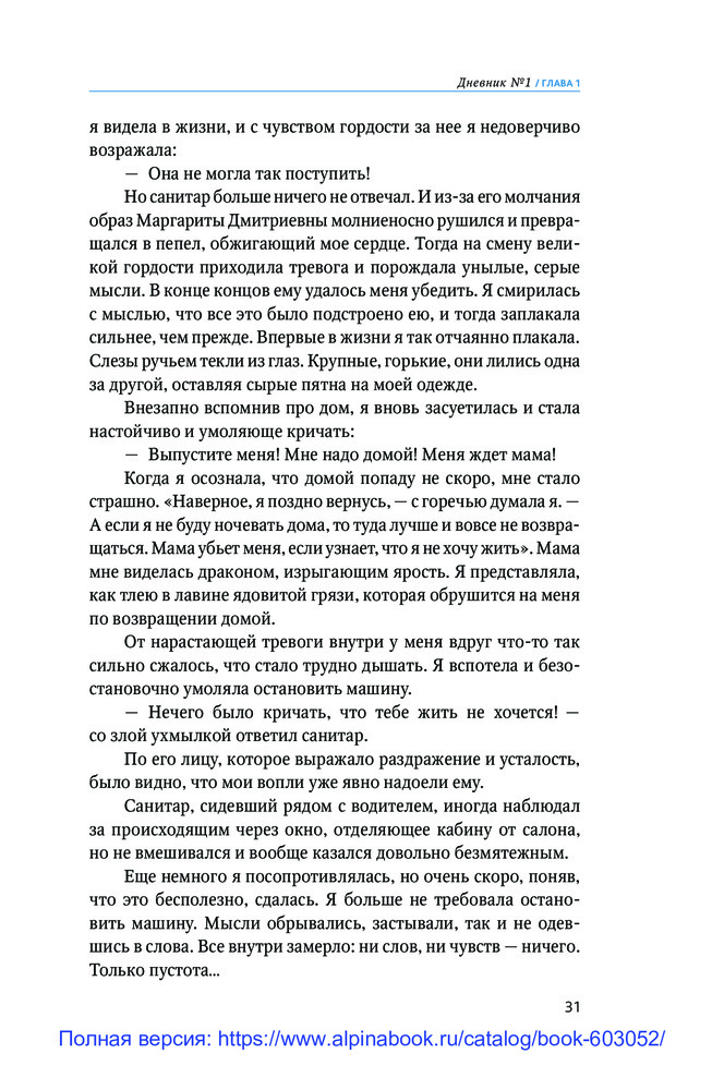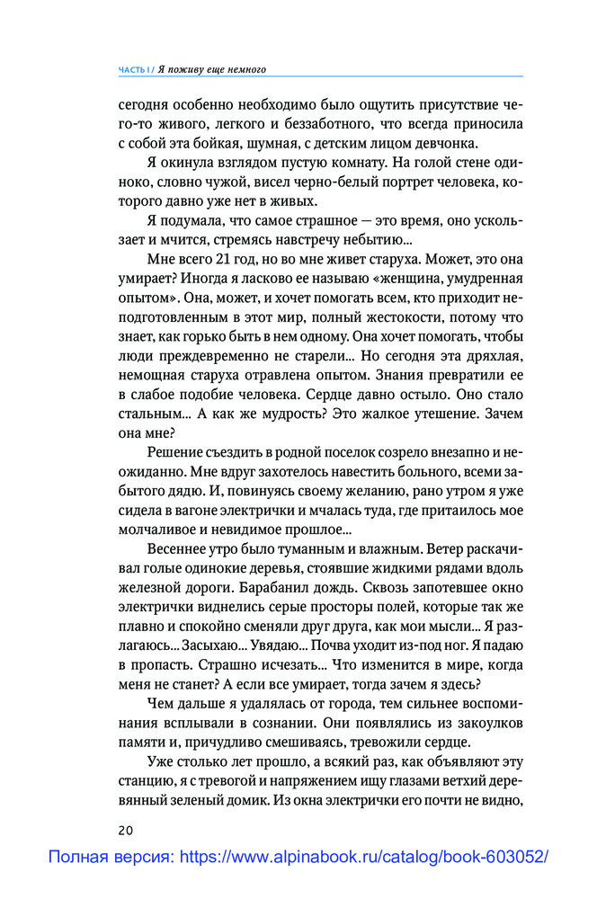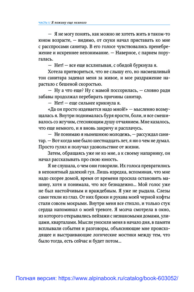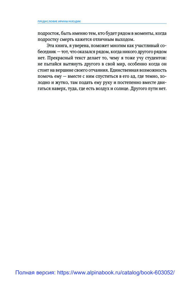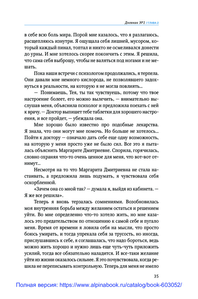 Я поживу еще немного. Дневник подросткаВ данный момент этот товар отсутствует в продаже. Возможно, у нас найдется аналогичный или похожий товар здесь. В жизни бывают ситуации, когда кажется, что все пропало, ничего не получается и ты никому не нужен. Чувство непонимания, горя, отчаянья и всепоглощающая боль застилают дневной свет и подталкивают к краю. В такие тяжелые моменты человеку, особенно подростку, необходима поддержка. Но как оказать ее правильно? Как помочь так, чтобы не навредить? А что делать, если вся эта боль — внутри вас и вы сами отчаянно ищете выход? Ответы вы найдете в этой книге вместе с рекомендациями психолога и полезными контактами, которые в критическую минуту могут спасти вас или вашего близкого. |