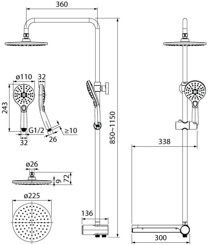Iddis Душевой гарнитур с верхней лейкой «Ray»+763