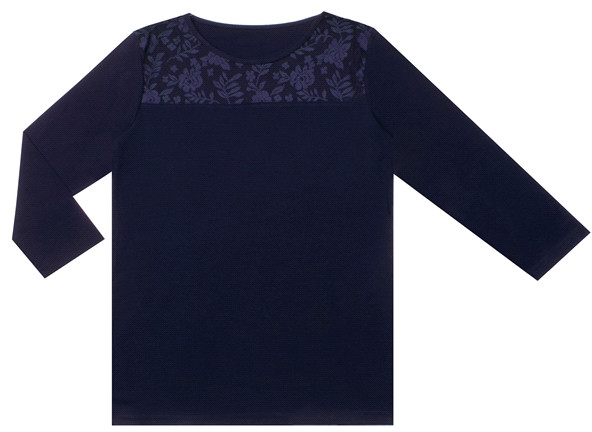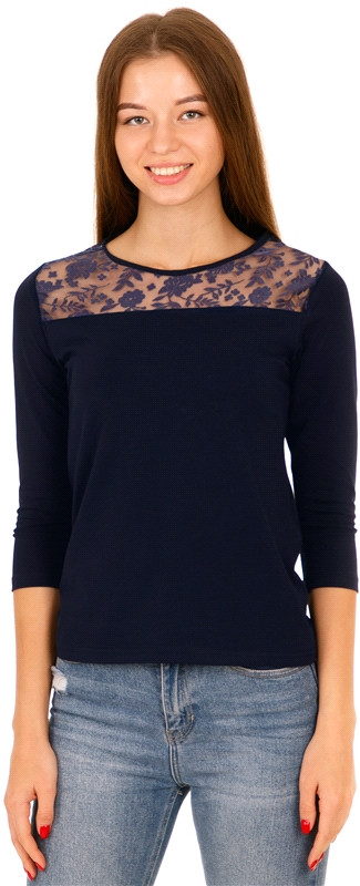 Лонгслив выполнен из тонкого хлопкового полотна с добавлением лайкры. Изделие на кружевной кокетке, с рукавами 3/4. Незаменимый базовый предмет женского гардероба!