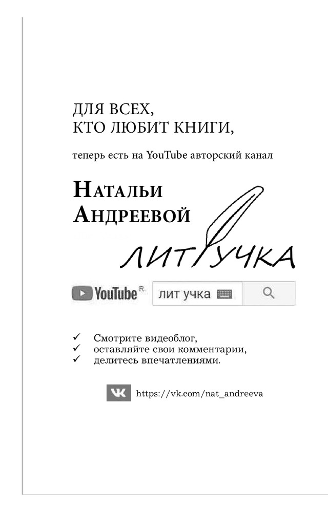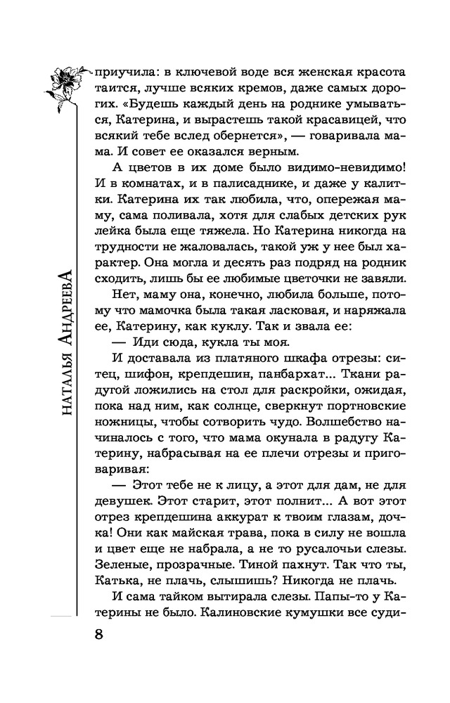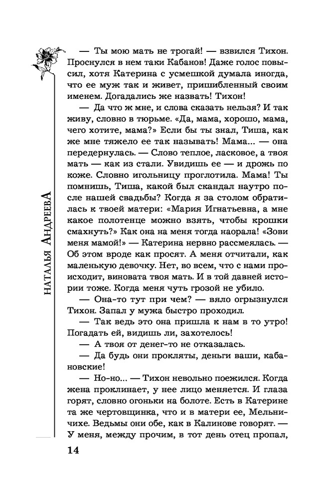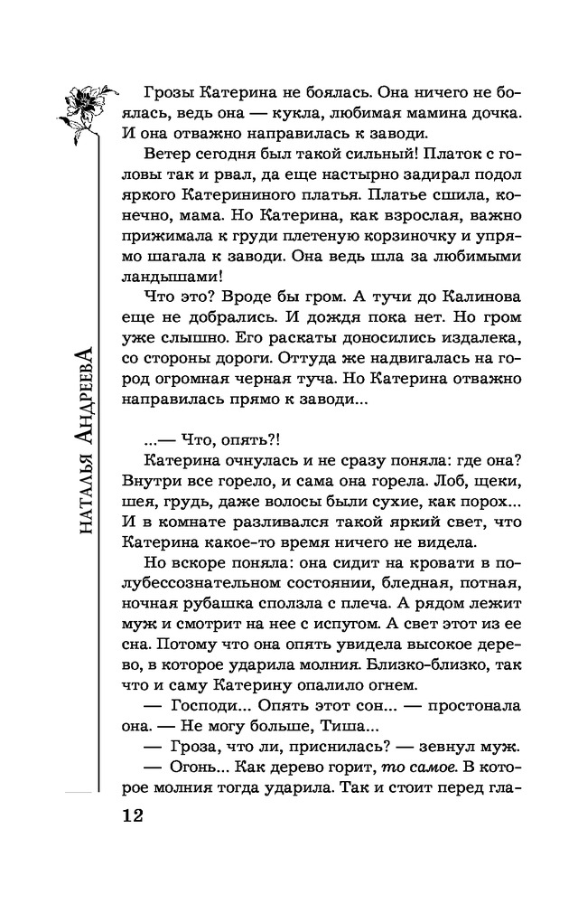 | Наталья Вячеславовна Андреева - российская писательница, автор романов детективного жанра. Родилась в деревне Порохово Волоколамского района Московской области. Окончила Волоколамскую среднюю школу, после чего поступила в Московский Институт Культуры на факультет библиотековедения и библиографии. Получив диплом, уехала в город Балашов Саратовской области, на родину мужа, где проработала пять лет в массовой библиотеке в должности библиографа. Позже перебралась вместе с мужем и сыном в... |