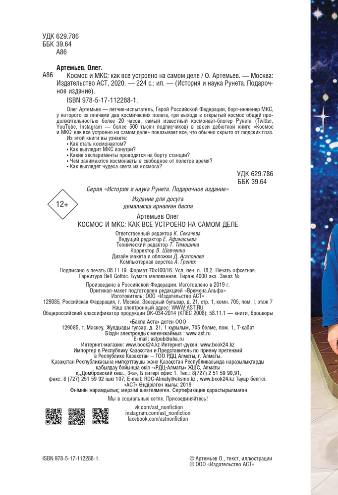 В данный момент этот товар отсутствует в продаже. Возможно, у нас найдется аналогичный или похожий товар здесь. Серия: История и наука Рунета. Подарочное издание Олег Артемьев — летчик-испытатель, Герой Российской Федерации, борт-инженер МКС, у которого за плечами два космических полета, три выхода в открытый космос общей продолжительностью более 20 часов, самый известный космонавт-блогер Рунета (Twitter, YouTube, Instagram — более 500 тысяч подписчиков) в своей дебютной книге «Космос и МКС: как все устроено» показывает все, что обычно скрыто от людских глаз.