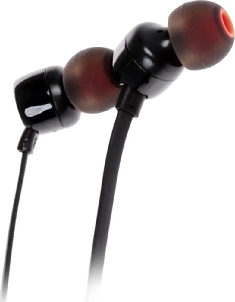 Наушники-вкладыши JBL T110 — лёгкая компактная модель с плоским кабелем, устойчивым к спутыванию. Они хорошо держатся в ушах, не вызывают дискомфорта даже при многочасовом ношении.