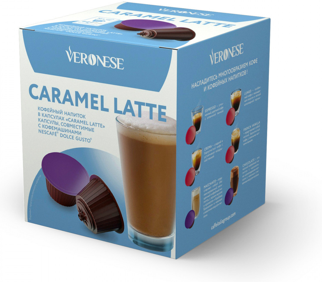 Veronese Кофе «Caramel Latte»В данный момент этот товар отсутствует в продаже. Возможно, у нас найдется аналогичный или похожий товар здесь. Veronese «Caramel Latte» — кофейный напиток родом из Италии, состоящий из одной части кофе эспрессо, трех частей молока и небольшого количества пены. Его часто посыпают тертым шоколадом или какао. «Caramel Latte» представляет собой сбалансированный кофейный напиток с молочно-карамельной ноткой. |