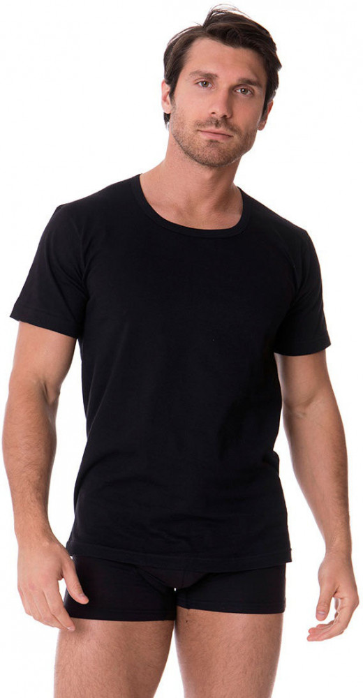 Очень глубокий вырез. Точно такую же брали с V-образным вырезом, там такого нет. А здесь вырез как на женской футболке. Качество хорошее, ткань приятная.