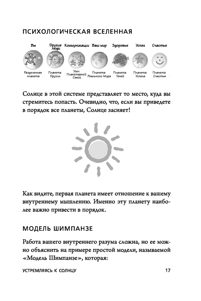 Приветствую всех любителей книг! Кто хочет купить и кто наткнулся на эту книгу, советую, покупайте) Кому как, люди разные и у всех будут разные реакций. Но я бы оценил эту книгу на 70% (улучшается понимание себя и психическое управление собой), а остальные 30% состоит в практике (то есть надо пробовать все в реальности), ну это я так для себя считаю. В первую очередь книга учит управлять собой. И семи аспектов вашей жизни. Самое главное все выученное применять в практике. Вы погрузитесь на путешествие во вселенной!!! Удачного пути!!! И кстати, у вас появится друг - это ваш Шимпанзе.
