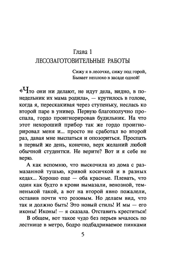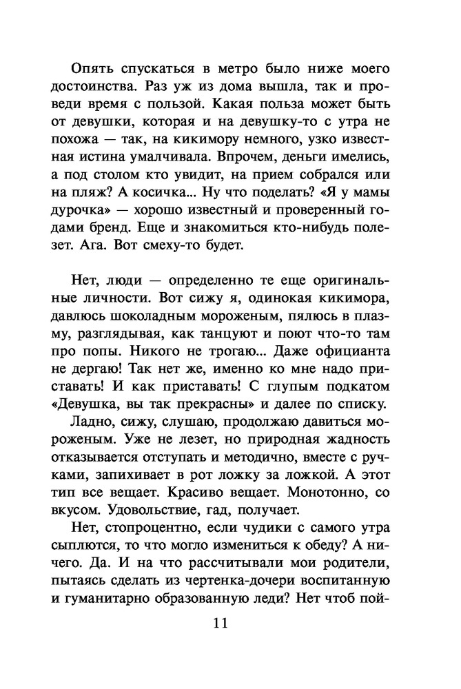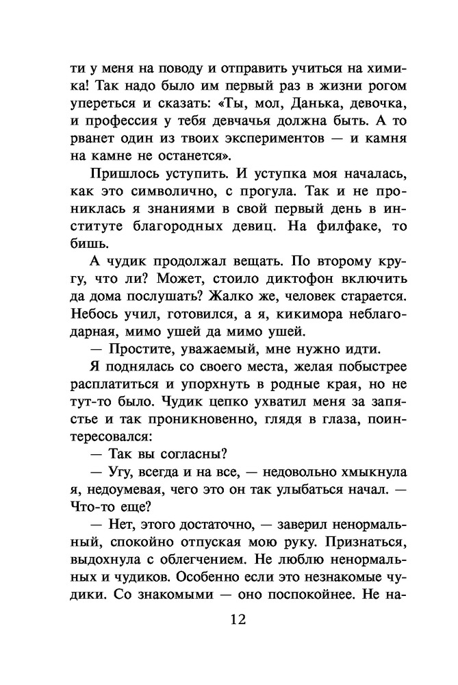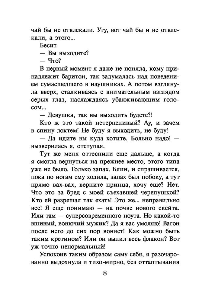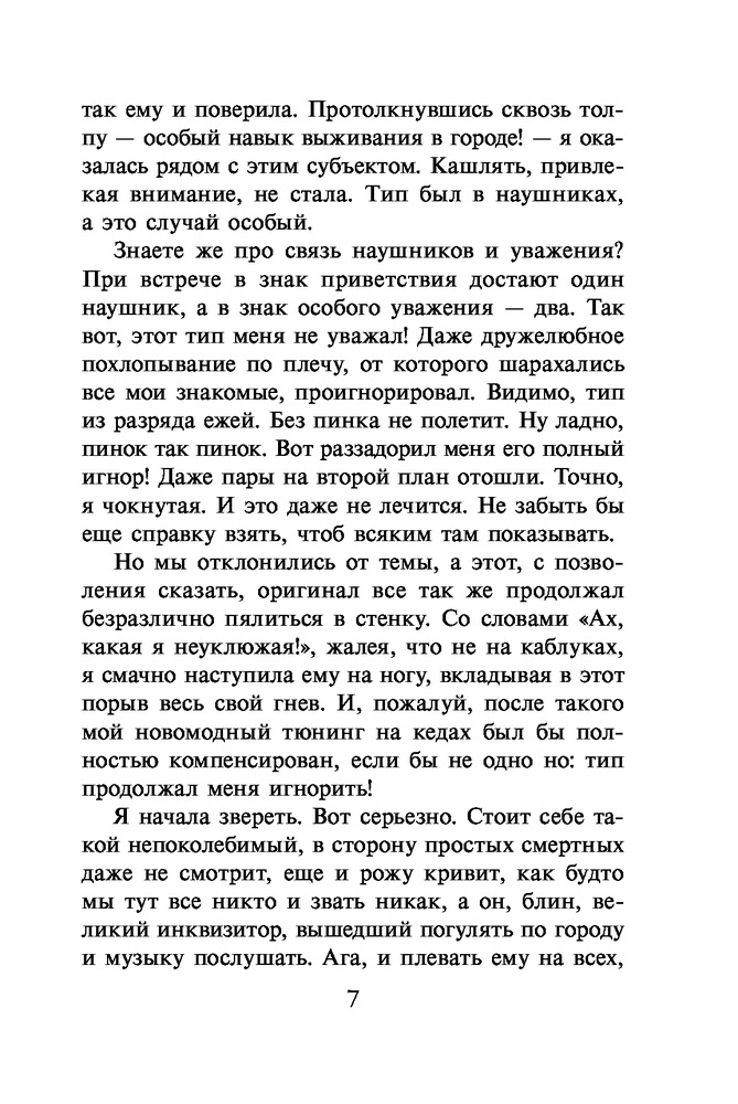 Это невозможно читать. Обычно даже занудные книги до середины дочитываю. А тут уже на 10 странице поняла что читать не хочется. Г-жа самоуверенная, хамка и воображала. А сам текст это вообще кошмар, перебор с юмором, читать не возможно. Мысль скачет, невозможно уловить суть. Тизер книги и обложка были на много интереснее. Жаль денег. Flip.kz молодцы. Быстро доставили. Спасибо)))