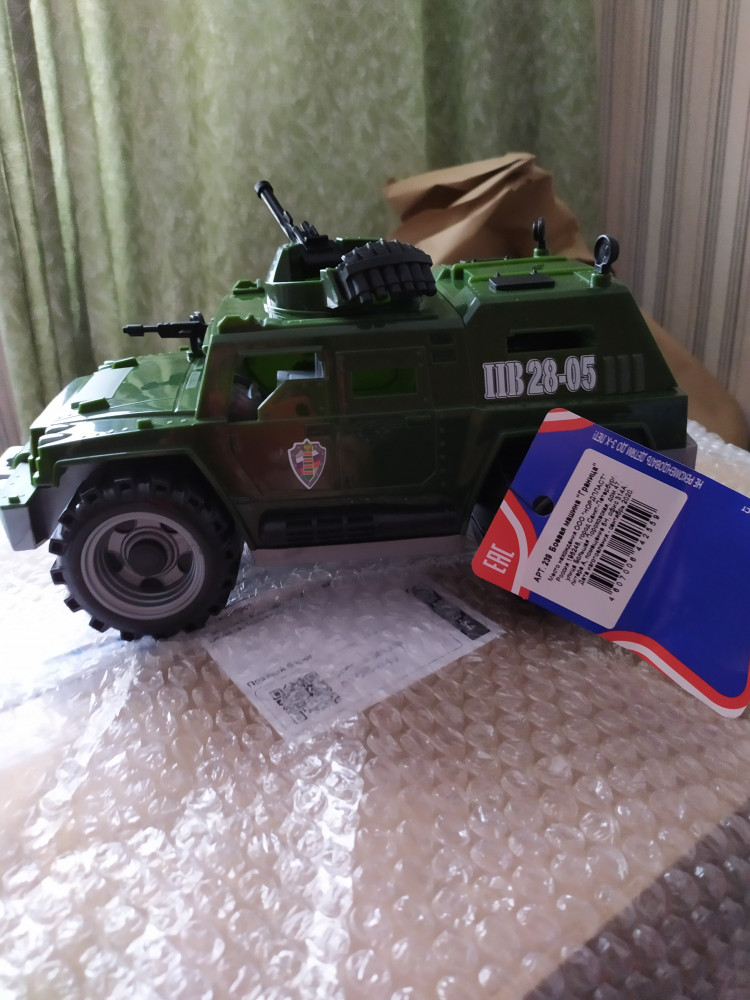 Машина соответствует описанию, пластик прочный, доставлена в коробке, все мелкие детали целые. Спасибо flip за доставку, все упаковано, все целое.