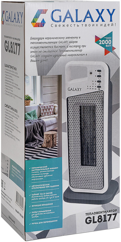 Galaxy ТепловентиляторВ данный момент этот товар отсутствует в продаже. Возможно, у нас найдется аналогичный или похожий товар здесь. Современный, стильный и эргономичный тепловентилятор «Galaxy GL8177» оснащен всеми необходимыми функциями для быстрого обогрева помещения до 25 кв.м. Модель оснащена долговечным керамическим нагревательным элементом. Система, препятствующая сжиганию кислорода, обеспечивает идеальный микроклимат в помещении. Двухуровневая защита от перегрева (термопредохранитель и термовыключатель) обеспечивает долгий срок службы тепловентилятора Galaxy GL8177. |