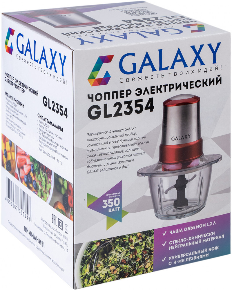 Galaxy Чоппер электрический GL2354В данный момент этот товар отсутствует в продаже. Возможно, у нас найдется аналогичный или похожий товар здесь. Чоппер «Galaxy GL2354» имеет стильный современный дизайн. Стеклянная чаша объемом 1,2 л, позволяет измельчать большой объем продуктов. Стекло — химически нейтральный материал, поэтому не впитывает запахи и не окрашивается в цвет продуктов, не выделяет вредных веществ в пищу. Закаленное стекло чаши позволяет измельчать горячие и особо твердые продукты. |