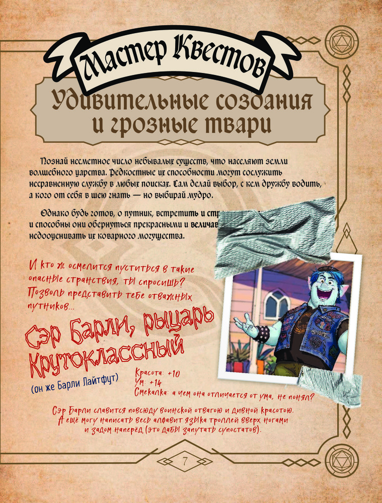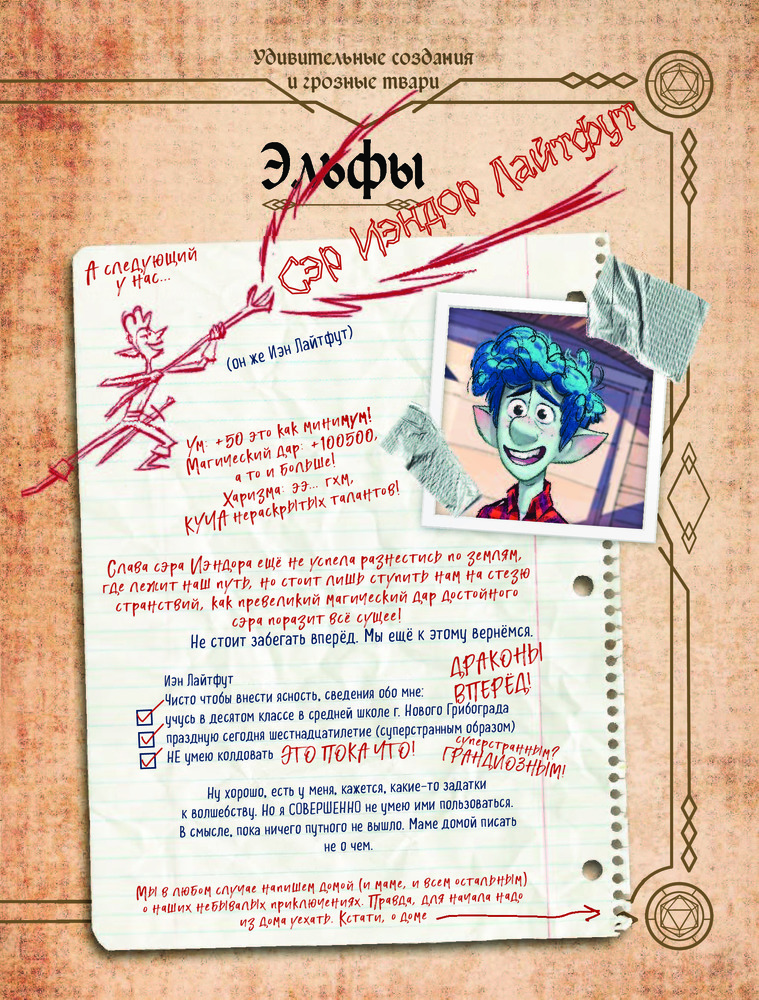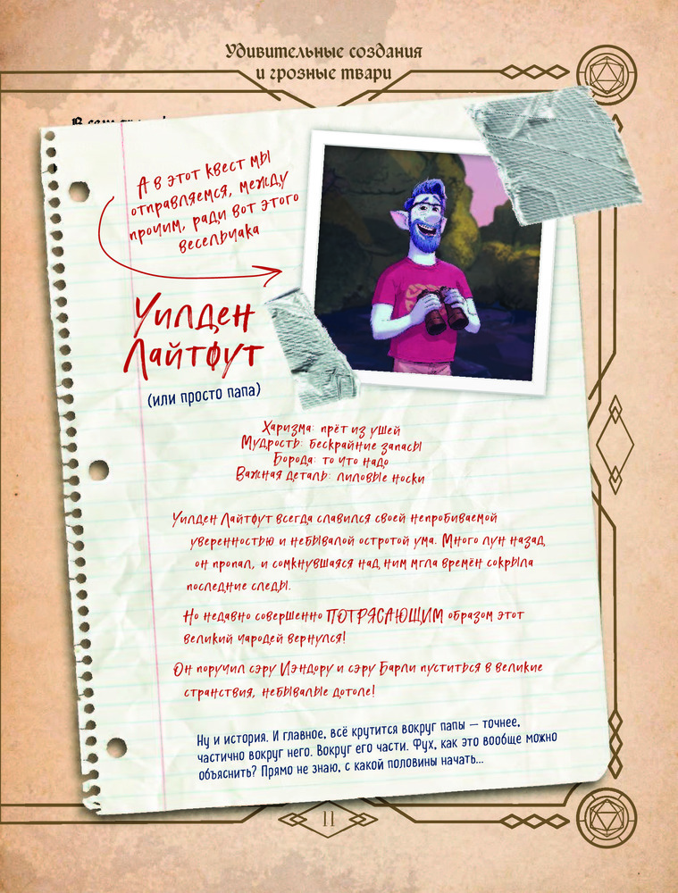 💳 Оплатить за товар можно при получении 🇰🇿 Есть бесплатная доставка по Казахстану от 1 дня 🎁 Копите бонусы с каждой покупки Серия: Уолт Дисней. Нерасcказанные истории В ваших руках — самые потрясающие путевые заметки на свете! Ведь именно эта книга помогала Иэну и Барли — героям нового диснеевского фильма «Вперёд» — в их квесте: подсказывала Иэну новые заклинания, а Барли — куда им идти. Это руководство стало их незаменимым спутником на пути к тому, чего им так долго не хватало, — к встрече с отцом. И по дороге отважные эльфы оставляли на полях книги свои заметки об их путешествии. Узнайте об их впечатлениях, испытаниях, провалах и победах из первых рук, а заодно... попробуйте себя в роли настоящего волшебника и искателя приключений! |