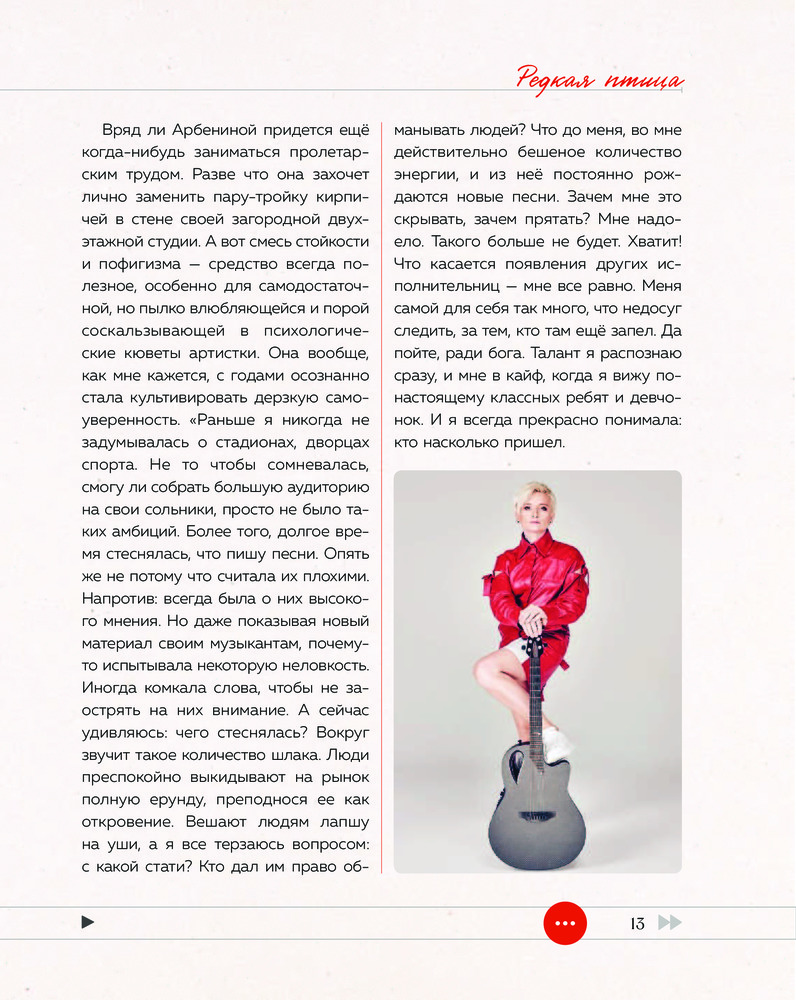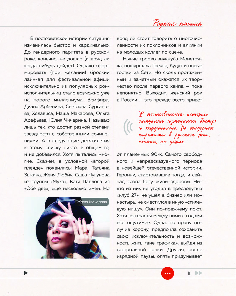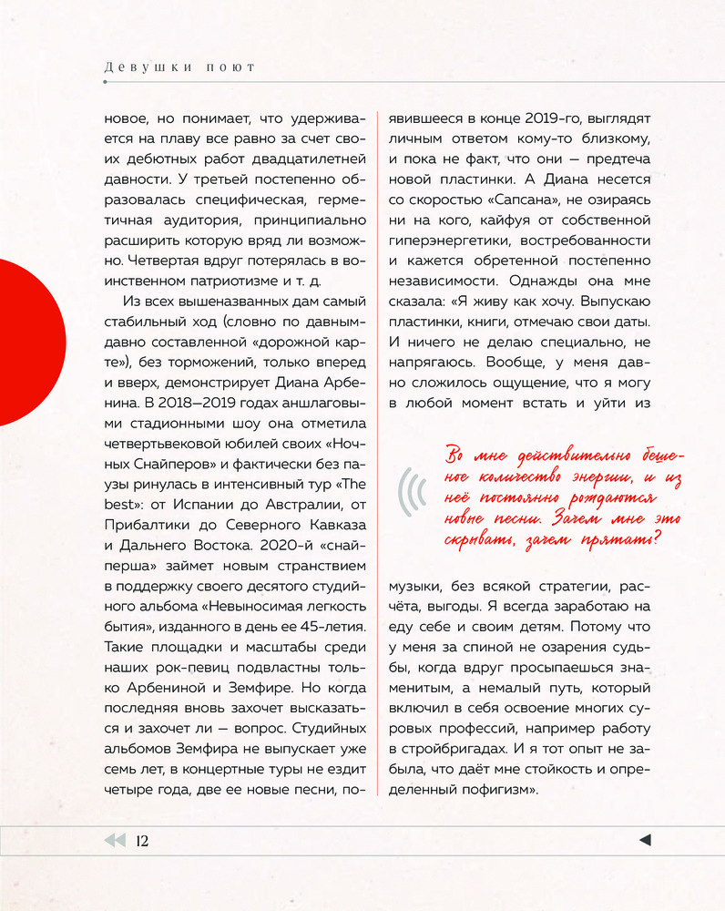 Редкая птица. Первая авторизованная биография Дианы Арбениной и группы «Ночные Снайперы»В данный момент этот товар отсутствует в продаже. Возможно, у нас найдется аналогичный или похожий товар здесь. Серия: Подарочные издания. Музыка Диана Арбенина, пожалуй, самая загадочная женщина на нашей сцене. Тысячи фанатов, которые горячо преданы ей много лет, ждут этой книги очень давно. Это — единственная авторизованная биография группы «Ночные Снайперы», созданная при участии самой группы и лично Дианы Арбениной. Часы разговоров, воспоминаний, обсуждений и вот — восстановленная для любимого читателя история, которая ожила к огромному концерту «Ночных Снайперов» в Москве. Книга полна фотографий: здесь архивные фото Дианы, концертные съемки и множество живых, закулисных моментов. Это позволит посмотреть на события в книге глазами самой Дианы. Михаил Марголис — один из самых крутых музыкальных журналистов, близкий друг Арбениной, человек тонкого вкуса. Ему удалось создать уникальную и честную историю, в которой будет много неожиданных поворотов. «Ночные Снайперы» — это драйв и песни, которые вы знаете наизусть! Аккаунт Дианы в инстаграм насчитывает 335 000 подписчиков. Книга выходит к огромному концерту «Ночных Снайперов» 14 февраля (в день всех влюбленных) на ВТБ Арене. |