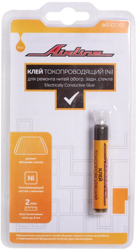 Airline Клей токопроводящийВ данный момент этот товар отсутствует в продаже. Возможно, у нас найдется аналогичный или похожий товар здесь. Клей для ремонта нитей токопроводящий предназначен для ремонта нитей обогрева заднего стекла автомобиля с повреждениями (разрывами) не более двух миллиметров. Обладает токопроводящими свойствами за счет добавления никеля. Не подлежат ремонту токопроводящим клеем подводящие напряжение шины. |