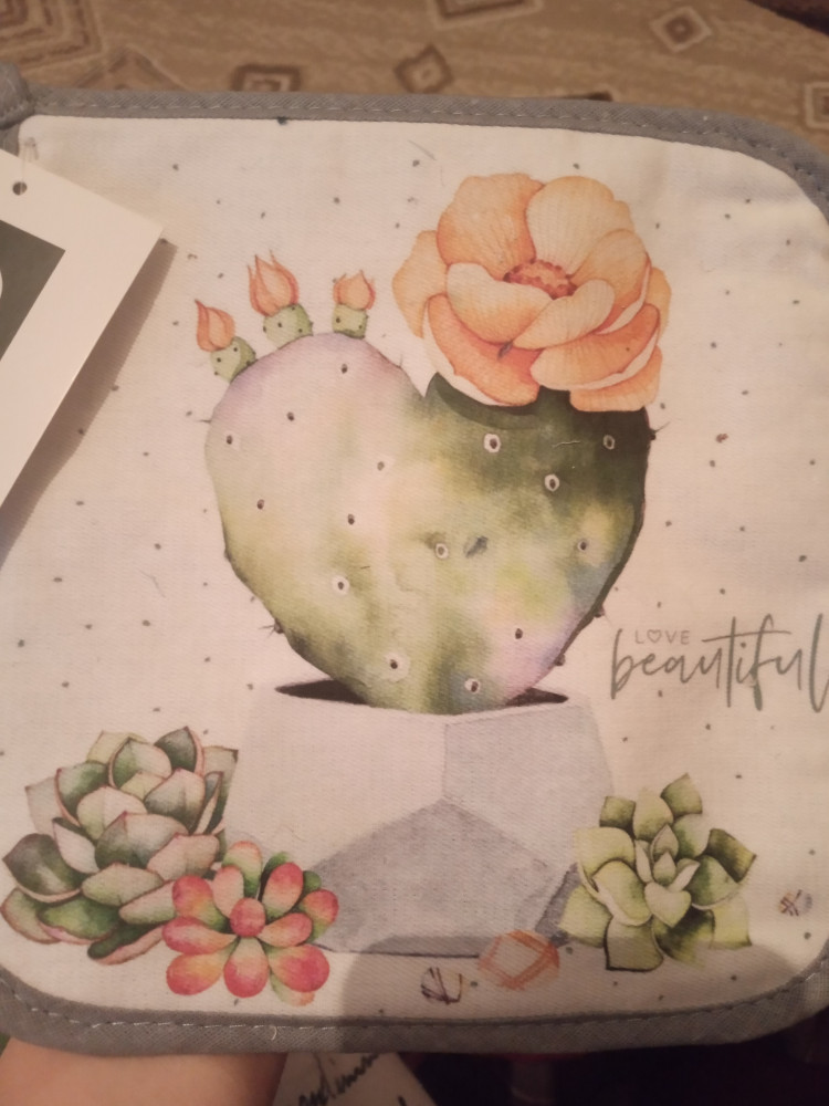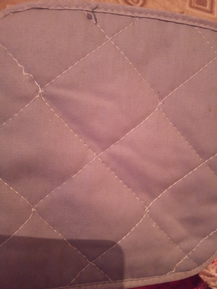 Прихватка пришла без брака, без дыр, в упаковке. Но она вся была в каких то мелких ниточках, что по началу осмотра меня насторожило. Ниточки не торчали из прихватки, как будто кто то шил, оставил остатки на столе, положил прихватку на этот стол, ниточки зацепились и остались на ней, но это не беда, просто нужно их убрать. Брала прихватку для мамы, внешний вид красивый. Но по опыту моей мамы, при использовании данной прихватки она очень хорошо чуствовала тепло. Она готовит давно и к жару её руки привыкли, но я надеялась что материал будет плотнее, чтобы можно было спокойно вынимать из духовки.