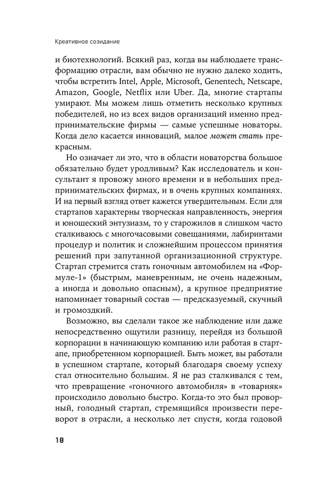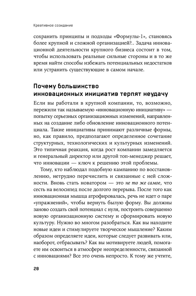 Креативное созидание. Системный подход к инновациям в крупных компанияхВ данный момент этот товар отсутствует в продаже. Возможно, у нас найдется аналогичный или похожий товар здесь. От крупных компаний обычно не ждут прорывных инноваций, так как по мере роста они становятся инерционны и бюрократизированы. Кажется, что на перемены способны только стартапы, а единственный способ для крупного бизнеса остаться на коне — скупать активных и инновационных новых игроков. |