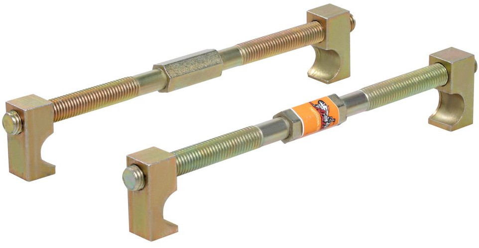 Комплект из двух прочных стяжек для пружин подвески. Применяются для сжатия и удержания пружин подвески автомобиля при монтаже и демонтаже. Стяжной винт имеет силовую трапецеидальную резьбу, изготовленную методом накатки.