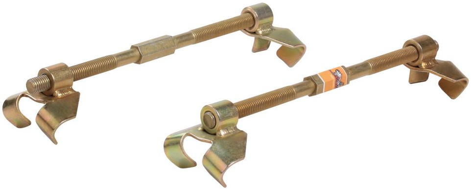 Комплект из двух прочных стяжек для пружин подвески. Применяются для сжатия и удержания пружин подвески автомобиля при монтаже и демонтаже. Стяжной винт имеет силовую трапецеидальную резьбу, изготовленную методом накатки.