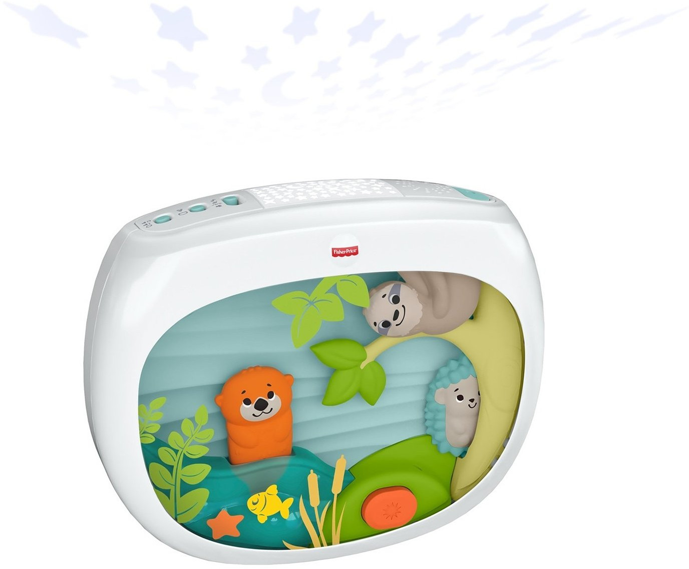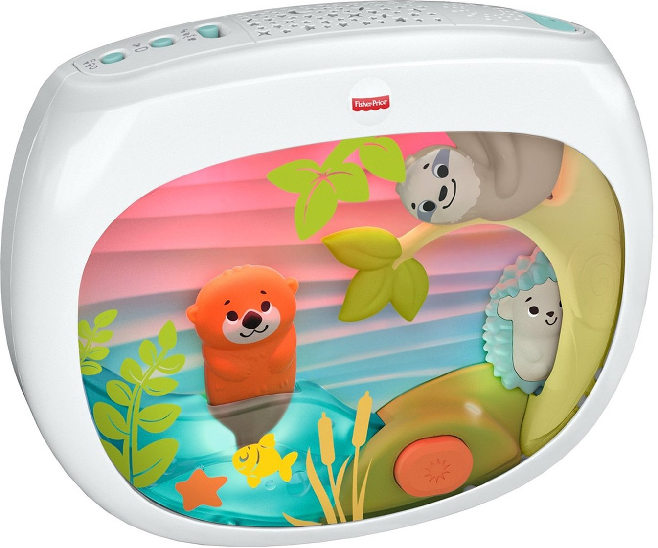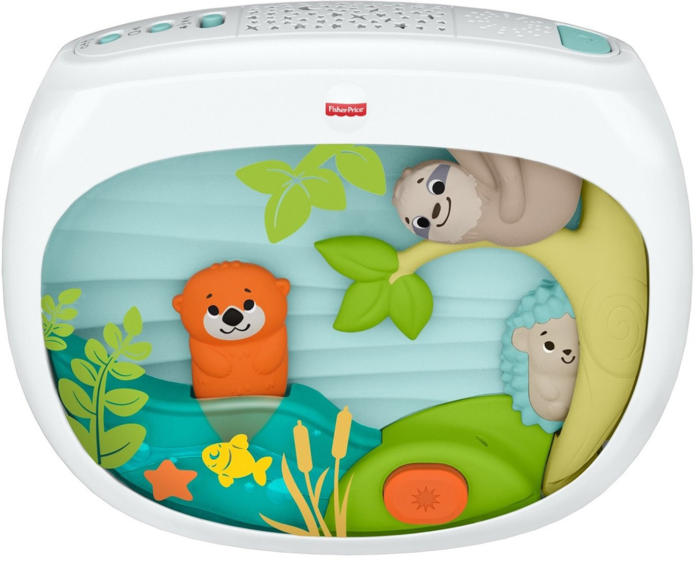Этот удивительный проектор от Fisher-Price создан при содействии экспертов по сну. Они разработали специальный плейлист «Ready, Settle, Sleep». Он представляет собой 30-минутную последовательность успокаивающих звуковых и световых эффектов, которые постепенно становятся мягче, переходя в конечном итоге в белый шум, что поможет вашему малышу быстрее уснуть и поспать подольше. Проектор можно прикрепить на большинство детских кроваток. Большой экран и подвижные друзья-животные привлекают внимание малыша, а в передней части экрана расположена кнопка, на которую ребенок может нажимать самостоятельно. Вы можете проверить работу проектора в тестовом режиме до покупки, для этого нажмите на кнопку в его передней части.