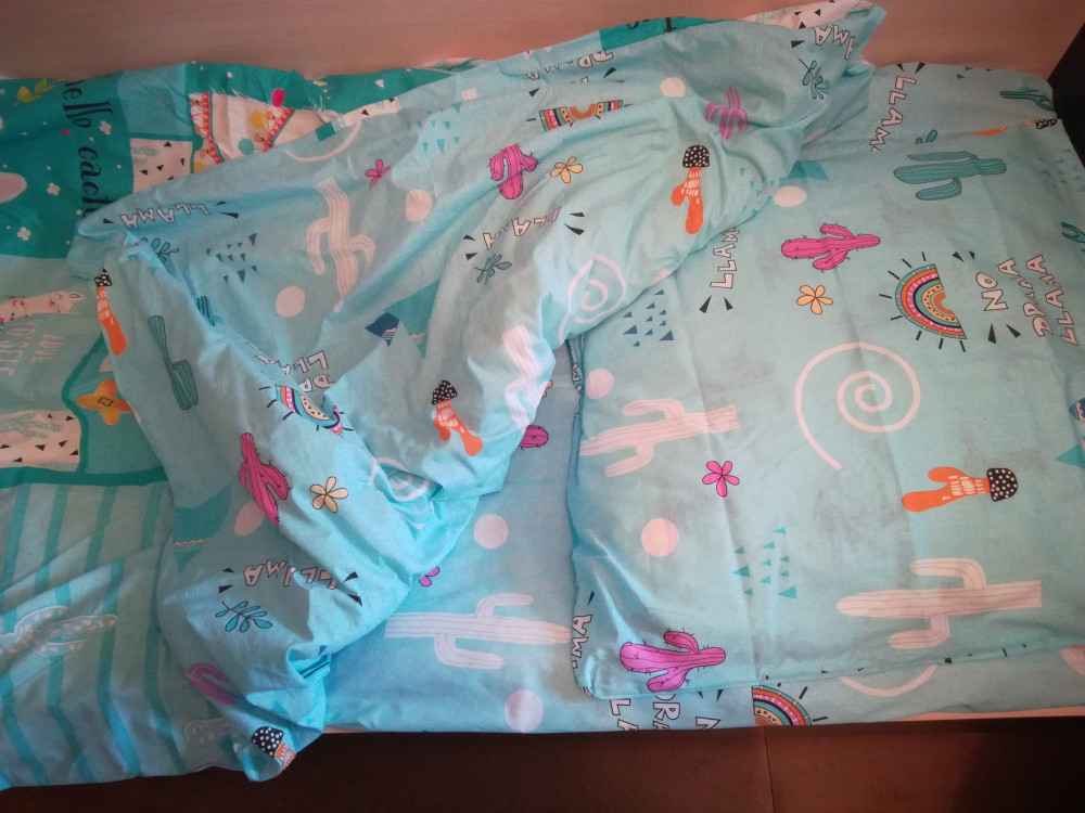 Набор очень понравился, расцветка яркая. Принесла с магазина, сразу постирала, не линяет. Качество отличное, то что хотела. Покупкой довольна