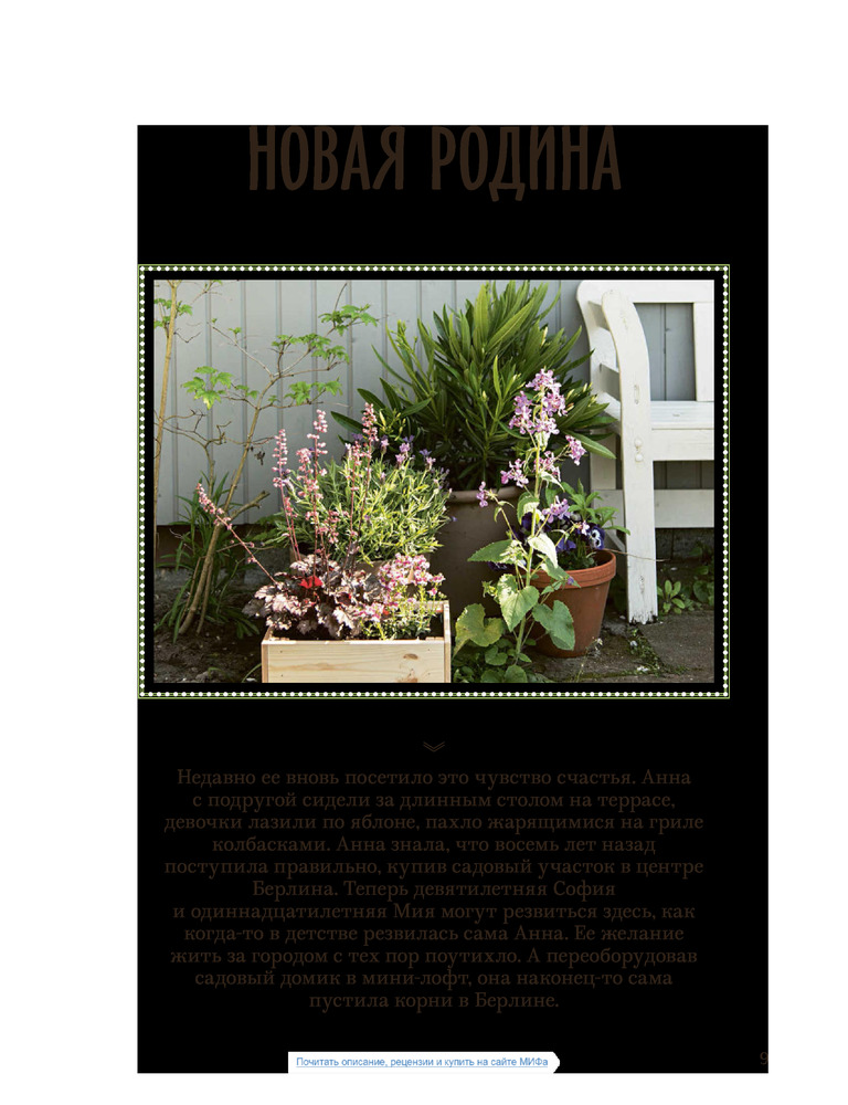 книга замечательная, красочная, вдохновляет. советую людям, которые имеют свой приусадебный участок или только мечтают о нем, можно найти интересные идеи и решения, особенно для людей, которые ценят простоту и креативный подход к оформлению.