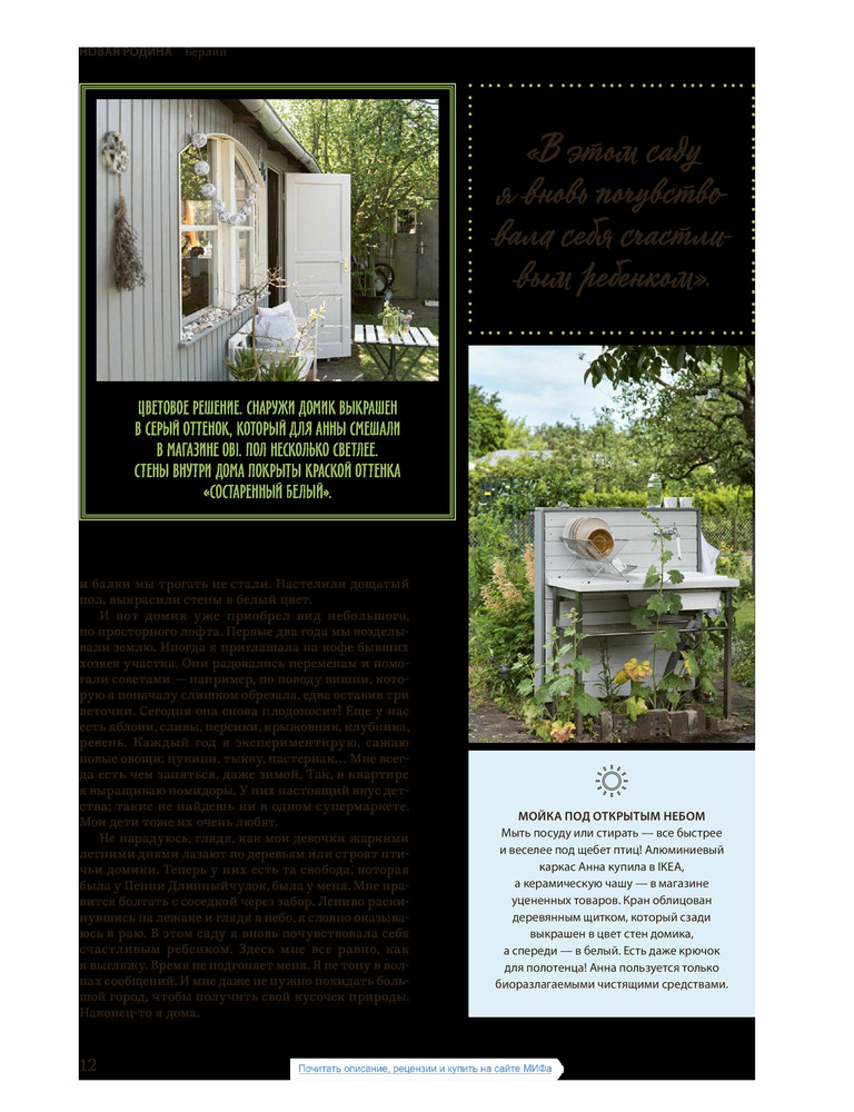 Отличная книга, уютная, мотивирующая, удовольствие-держать её в руках. Уже взяла себе несколько идей обустройства дачного домика на заметку.
