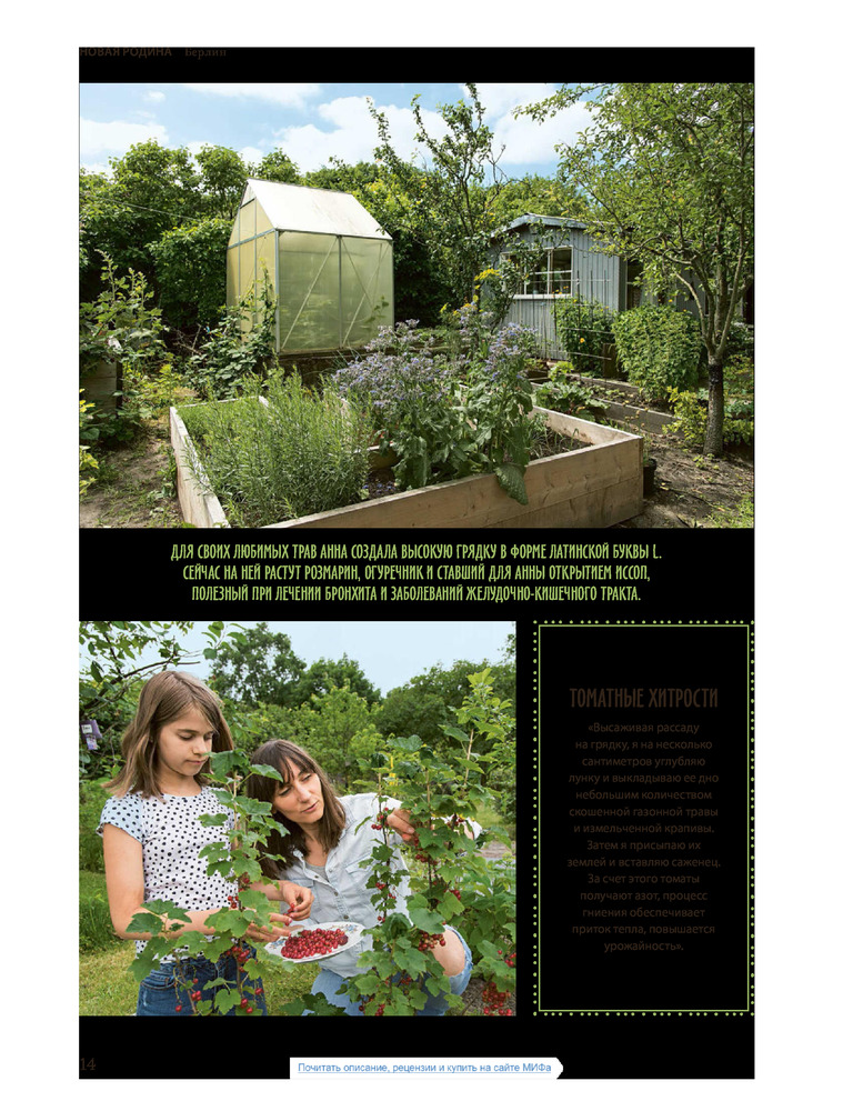 | Ульрике Шахт — фотограф, живет и работает в Гамбурге. Среди ее клиентов такие знаменитые журналы и фирмы, как Der Spiegel, Für Sie, Myway, Shape, AstraZeneca, Beiersdorf, Jako-O und Ingenics. Ее очень интересуют люди и их истории, она питает слабость к обустройству быта и просто предвкушает радость от первого урожая из своей новенькой теплицы. |