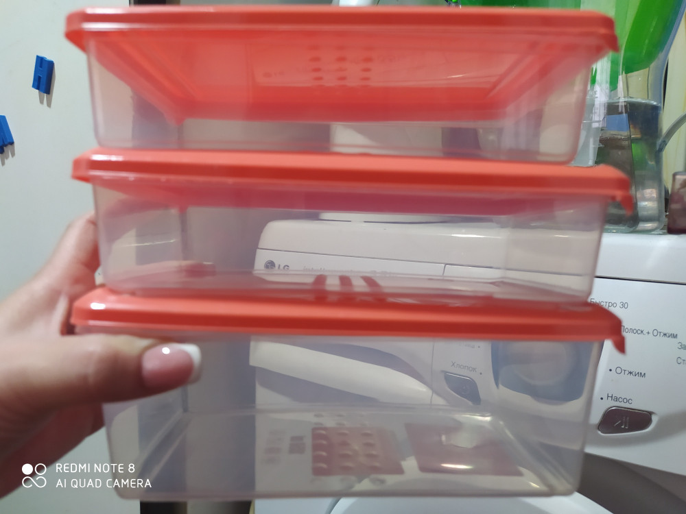 Контейнеры хорошие. Приобрела для сыпучих продуктов. Хороши тем,что можно ставить друг на друга. Экономят место в шкафу. Спасибо команде Flip.kz.