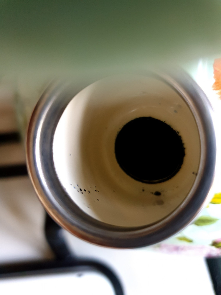 Только после получения увидела, что на коробке и в описании написано, что он для индукционной поверхности. Использую на газовой плите, посмотрю, как себя поведёт. Целый, сколов нет. В носике чёрные точки. По размеру - небольшой, я б сказала.