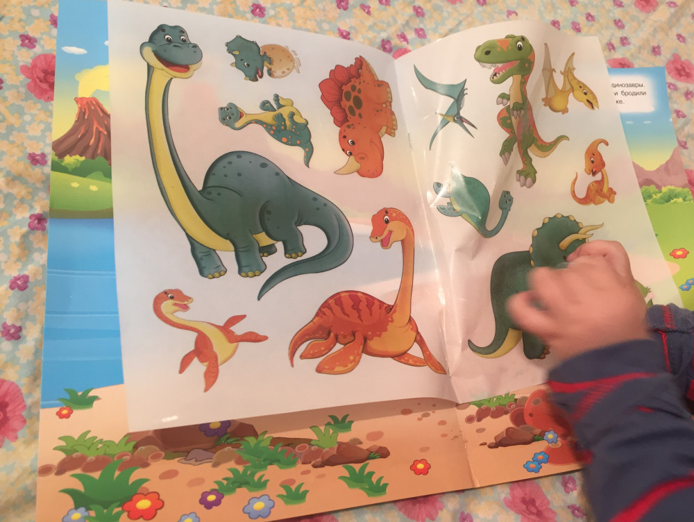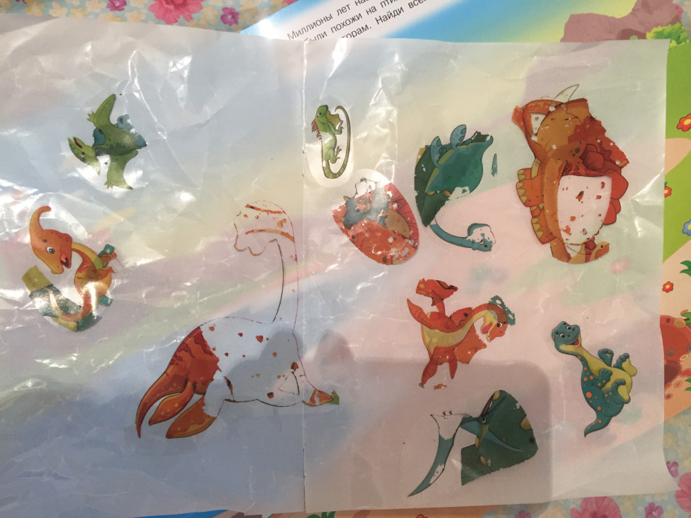 Брала всю серию этих наклеек не один раз все нравилось, яркие, переклеиваются много раз. Увидела новую серию про динозавров и сразу заказала, цвет яркость все как прежде, но качество самих наклеек гораздо хуже :(( Сын наклеил наклейки друг на друга и со всех начала сходить краска, жаль что качество испортилось.