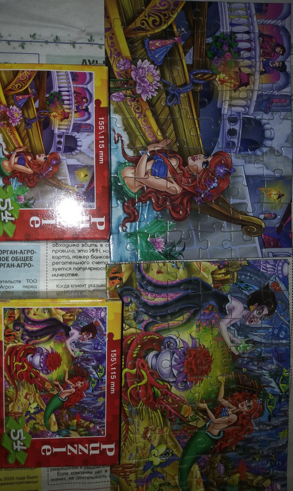 Хорошие пазлы. Мелкие. Обратите внимание на размер в описании! Упакованы только в картонную коробочку. Возможно из-за этого в одной из коробочек не хватило одного кусочка. Обнаружили уже когда собрали картинку.
