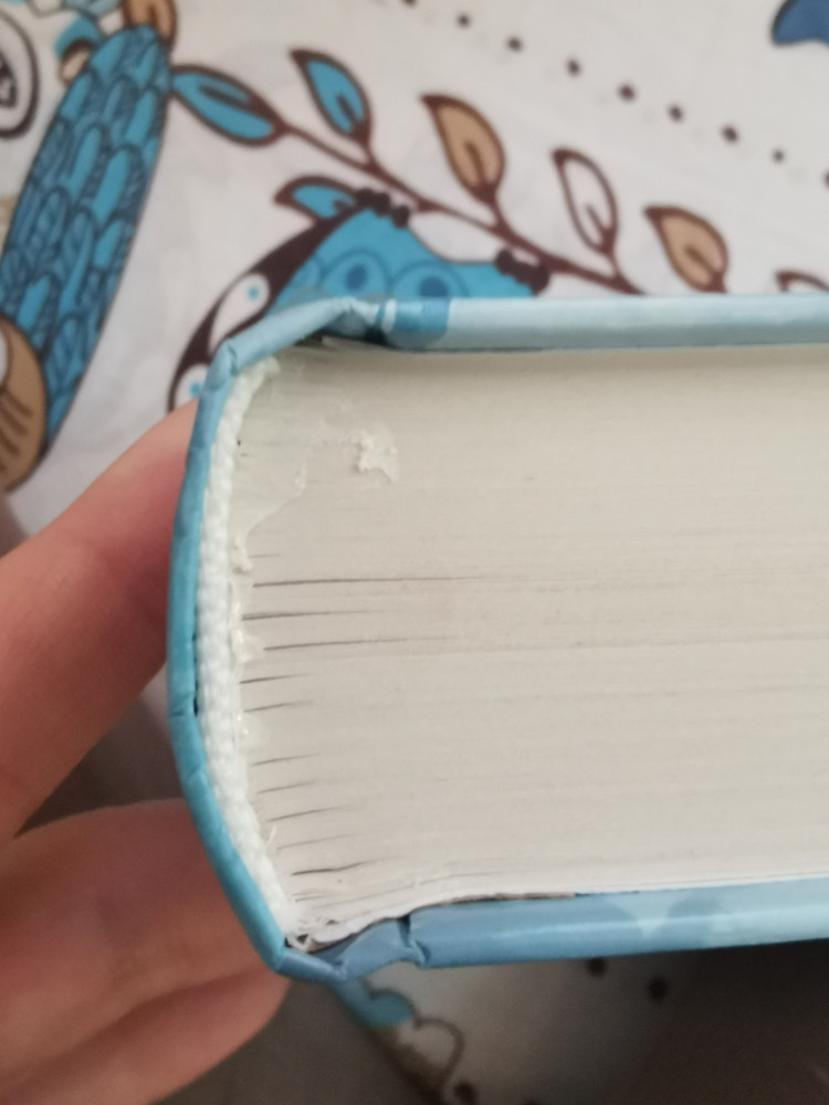 Книга пришла отдельно не запакованная. Обложка и страницы целые. Слегка помялся корешок и на верхнем обрезе присутствует клей.