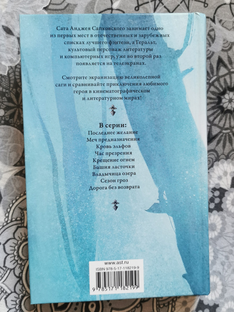 Отличная книга,читается на одном дыхании,как вобщем и все книги ведьмака.После первой книги затянуло,прочитав ее взял оставшиеся 4))Берите все,не пожалеете