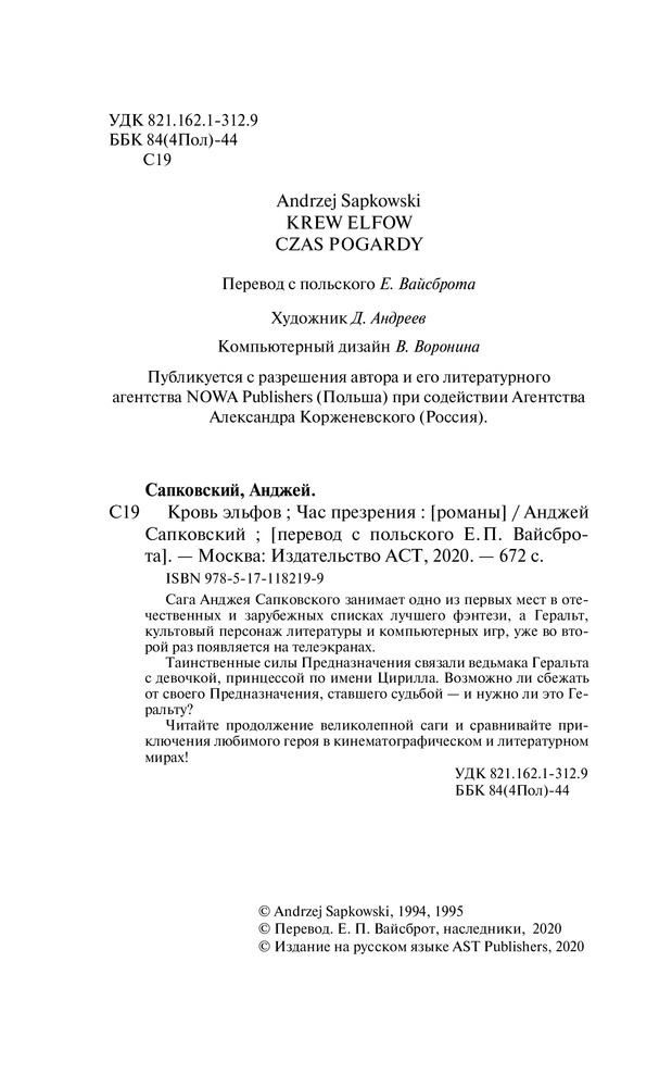 Ведьмак. Кровь эльфов. Час презрения+170 увлекательный сюжет качество бумаги красивая обложка много страниц