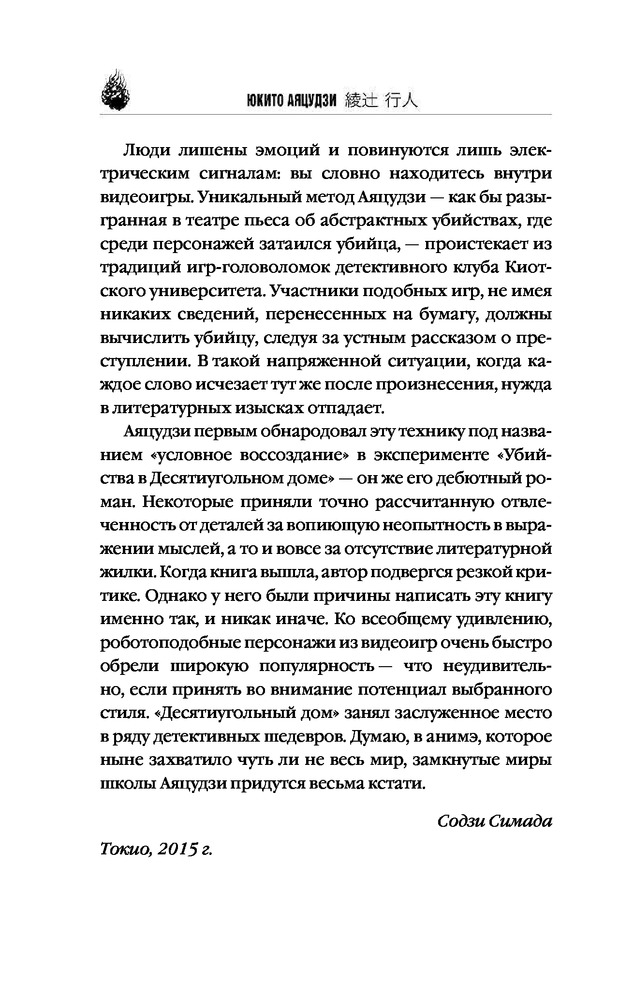 История та ещё приятная и интересная загадка. Давно знакома с хонкаку–детективами и эту читала с удовольствием. Приятно, что ученик Содзи Симады пишет так же интересно, как учитель.