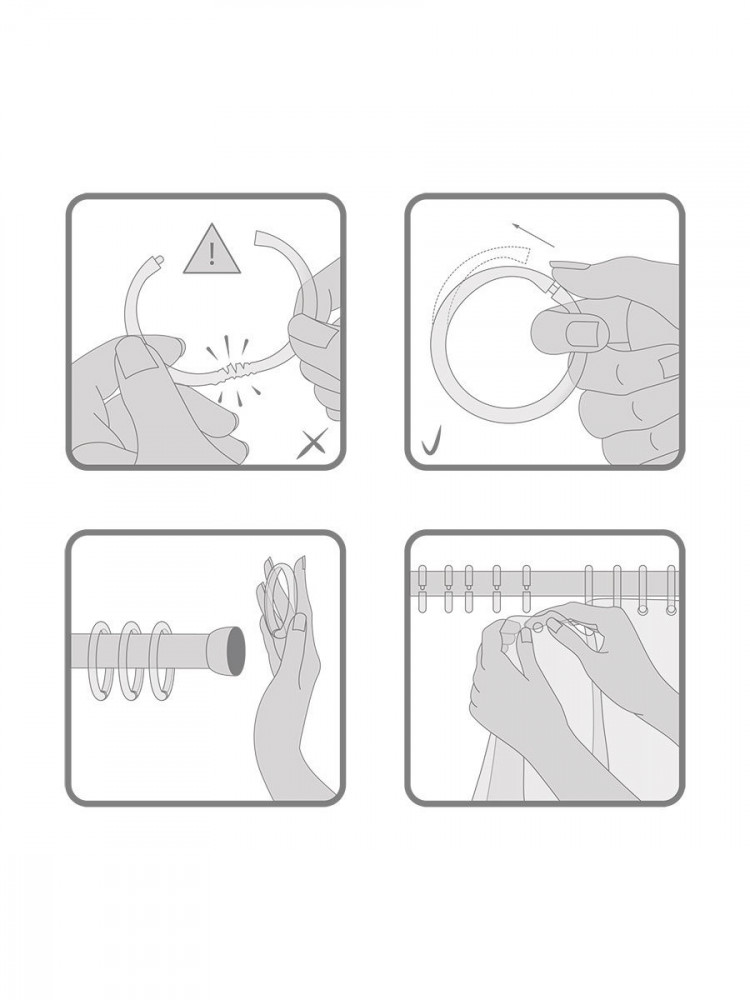 В данный момент этот товар отсутствует в продаже. Возможно, у нас найдется аналогичный или похожий товар здесь. Серия: Lavande Штора не только защитит пол вашей ванной от брызг, но и станет оригинальным украшением интерьера. Элегантный дизайн создает утонченный дух французской провинции. Штора крепится на прозрачные пластиковые кольца (12 шт., внутренний диаметр 45 мм.). Кольца фиксируются замочком «Клик», чтобы их открыть, нужно нажать на край и сдвинуть, как показано в инструкции. Ни в коем случае нельзя с силой размыкать кольца, растягивая в разные стороны.
