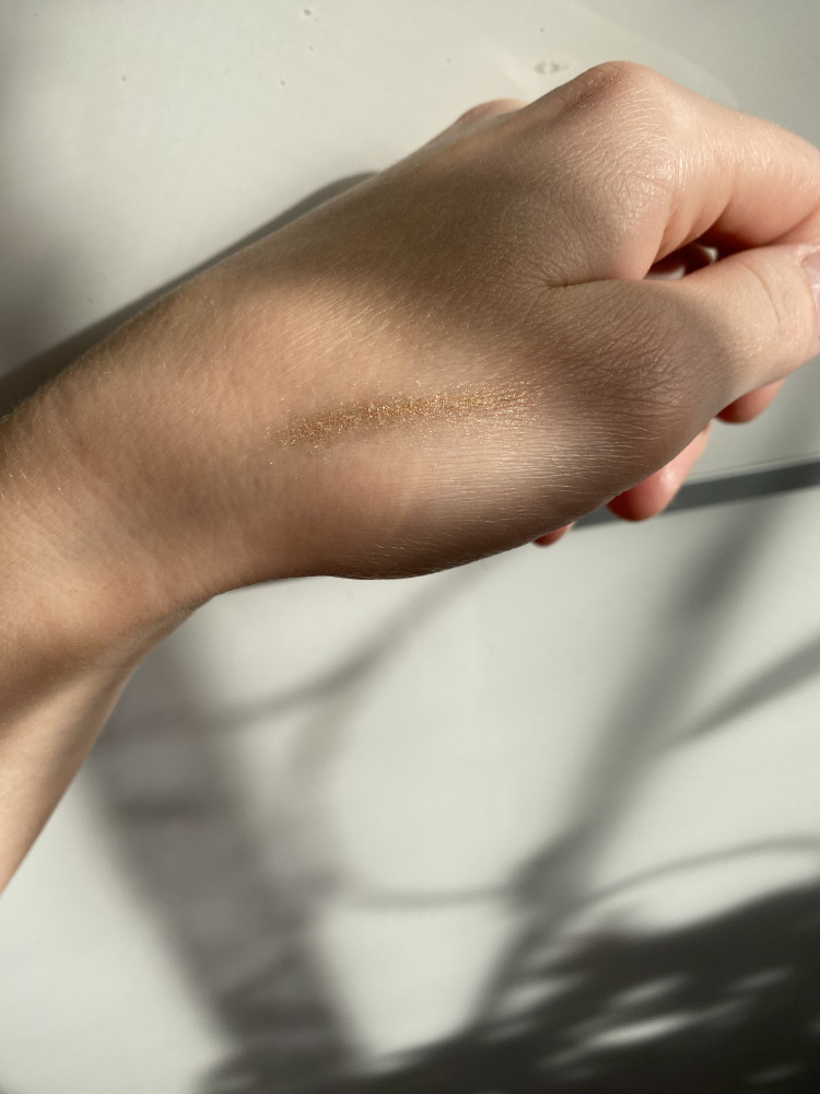 какой же шикарный хайлайтер, хватает маленького мазка кистью, чтоб сиять, нет крупных блесток, красивый оттенок, я очень довольна