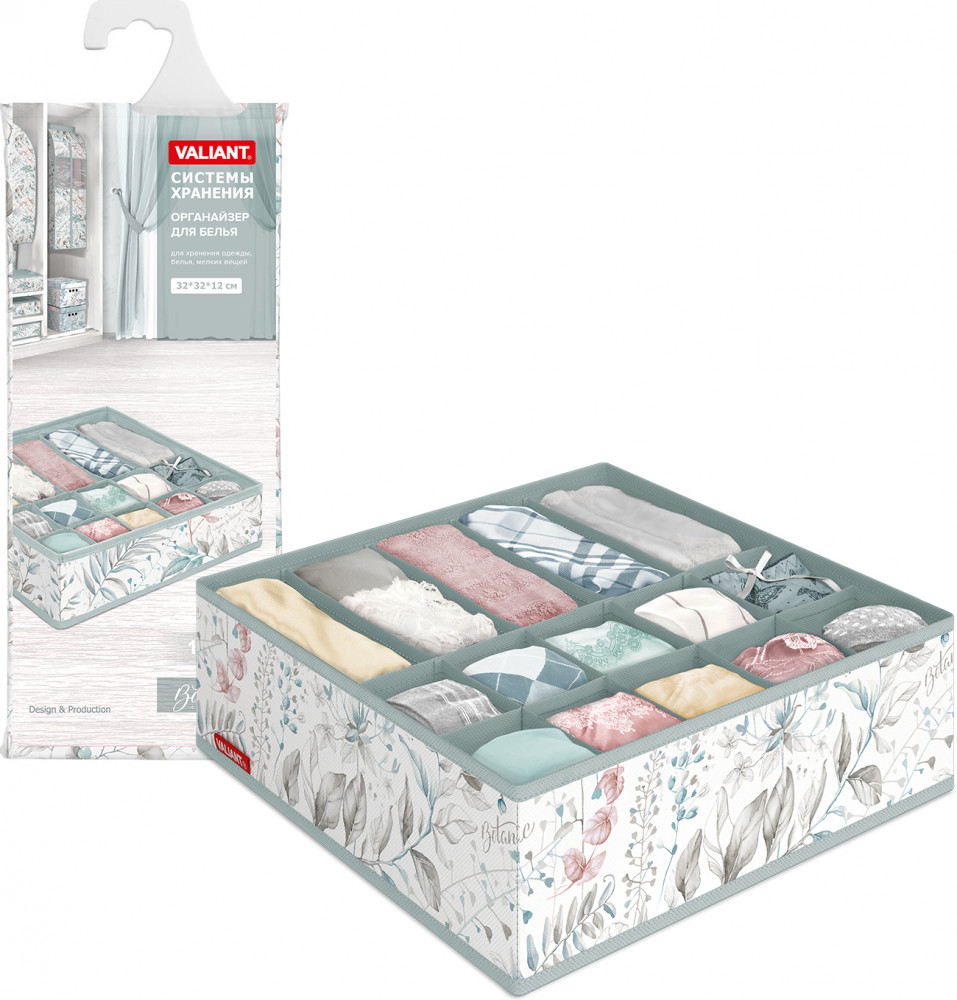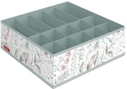 Valiant Органайзер для белья универсальный без крышкиВ данный момент этот товар отсутствует в продаже. Возможно, у нас найдется аналогичный или похожий товар здесь. Серия: Путешастики Органайзер поможет упорядочить размещение белья. Изделие выполнено из высококачественного нетканого материала, который обеспечивает естественную вентиляцию, позволяя воздуху проникать внутрь, но не пропускает пыль. Вставки из плотного картона хорошо держат форму. Изделие содержит 15 секций, предназначенных для хранения трусов, носков и другого мелкого белья. Органайзер легко раскладывается и складывается. |