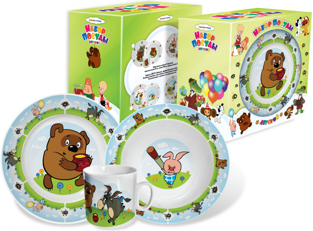 Добрушский фарфоровый завод Набор детской посуды «Винни Пух»В данный момент этот товар отсутствует в продаже. Возможно, у нас найдется аналогичный или похожий товар здесь. Для данной коллекции использована посуда из фарфора, а изображения нанесены с помощью качественной деколи. Такая картинка не боится мытья в посудомоечной машине и не выцветает с годами. Не подходит для использования в духовке и на открытом огне.Посуда упакована в яркую картонную коробку с прорезью, через которую можно увидеть дизайн тарелки. |