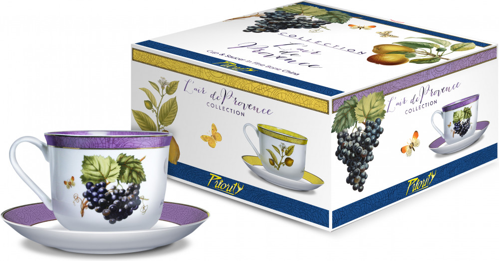PrioritY Чайная пара «Виноград»В данный момент этот товар отсутствует в продаже. Возможно, у нас найдется аналогичный или похожий товар здесь. Серия: Дыхание Прованса Чайная пара «PrioritY» выполнена из костяного фарфора. Набор состоит из чашки и блюдца. Прованс — один из самых уютных домашних стилей. В нем сочетаются обаяние вековых народных традиций и дыхание уточненной французской элегантности. В оформлении этой серии использованы иллюстрации типичных для провинции Прованс фруктов из великолепных ботанических атласов 18 века. Налет старины угадывается и в каждой детали оформления: от стилизованных кракелюров до написанных на латыни названий растений. В коллекции шесть ярких дизайнов чайных пар, каждая из которых создаст атмосферу праздника на вашем столе. Приятного чаепития! Для пищевого использования. Не используется в духовке, СВЧ и на открытом огне. |