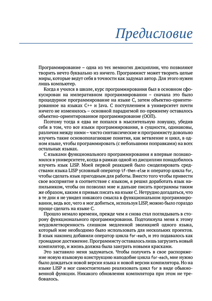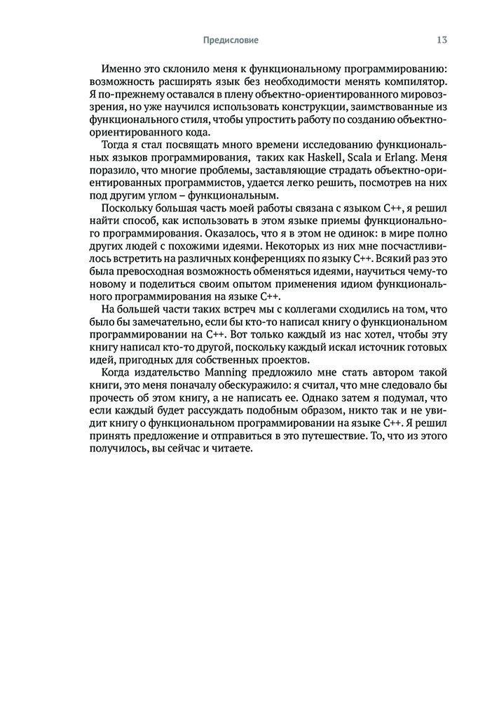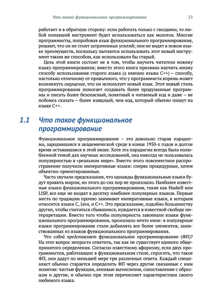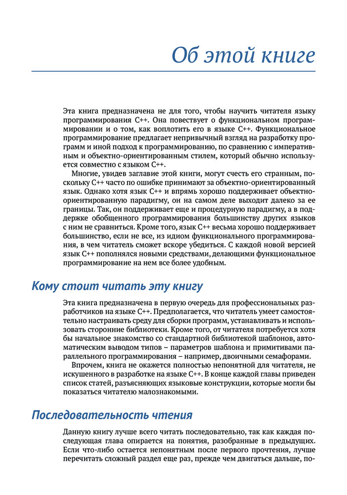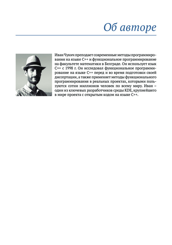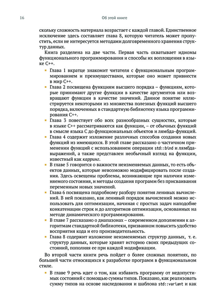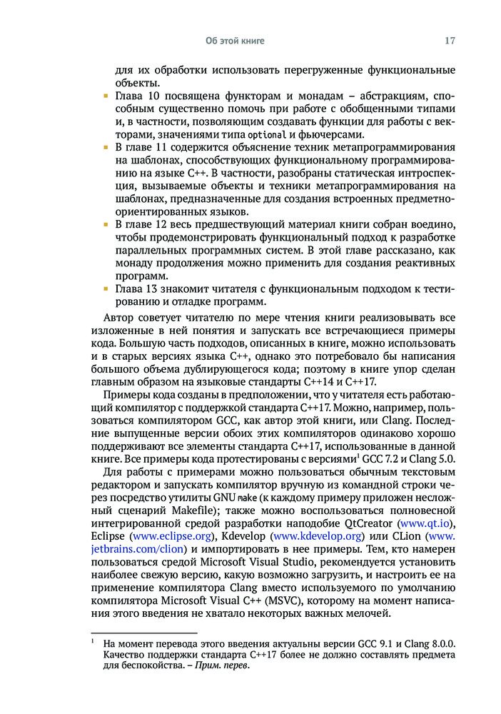 💳 Оплатить за товар можно при получении 🇰🇿 Есть бесплатная доставка по Казахстану 🎁 Копите бонусы с каждой покупки Хорошо написанный код легче тестировать и использовать повторно, его проще распараллелить, и он меньше подвержен ошибкам. Владение приемами функционального программирования поможет вам писать код, соответствующий требованиям к современным приложениям, проще выражать сложную логику программ, изящно обрабатывать ошибки и элегантно оформлять параллельные алгоритмы. Язык C++ поддерживает функциональное программирование с использованием шаблонов, лямбда-выражений и других своих базовых возможностей, а также алгоритмов из библиотеки STL. |