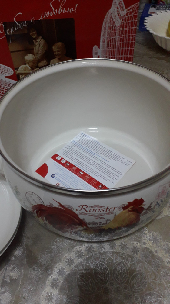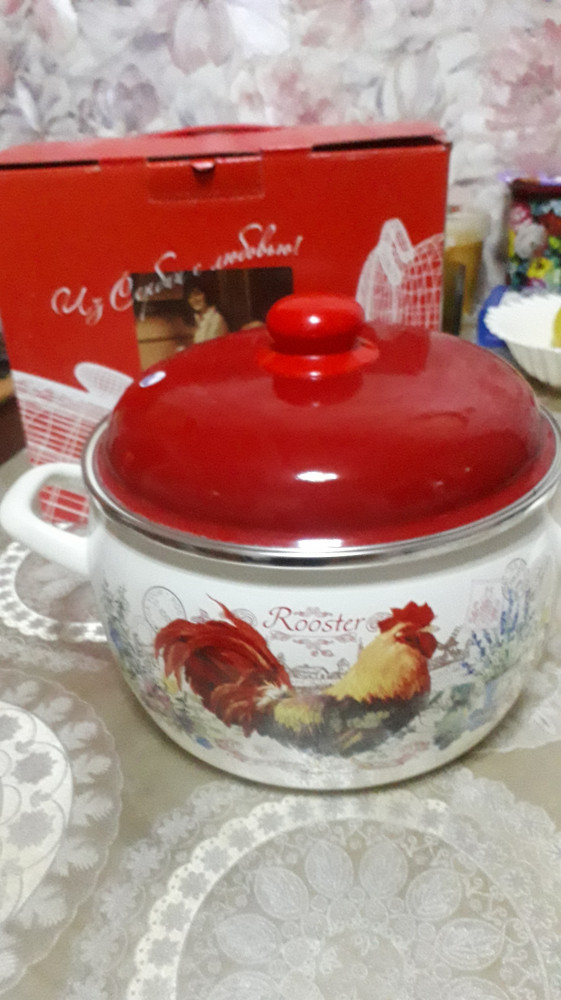 Красивая, очень радует глаз и на плите и в холодильнике, удобная, не большая не маленькая. Супчик на троих на два раза получается, которая 4 л, маленькая тоже очень классная. Все было хорошо упаковано