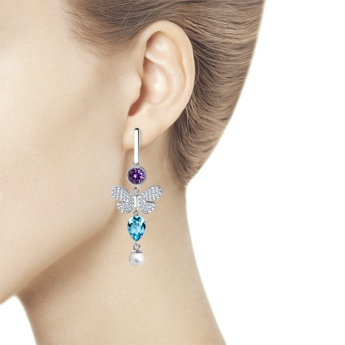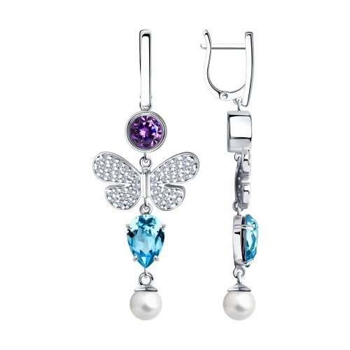 SOKOLOV Серьги из серебра с жемчугом, кристаллами Swarovski и фианитами