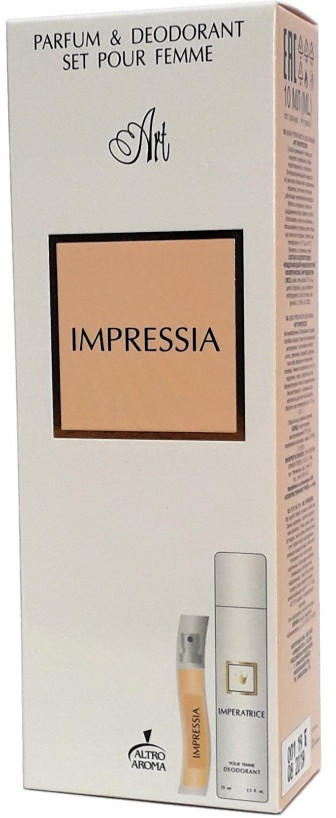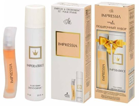 Positive Parfum Парфюмированный набор для женщин «Impressia»В данный момент этот товар отсутствует в продаже. Возможно, у нас найдется аналогичный или похожий товар здесь. В набор входит: туалетная вода — 10 мл, дезодорант — 75 мл. |