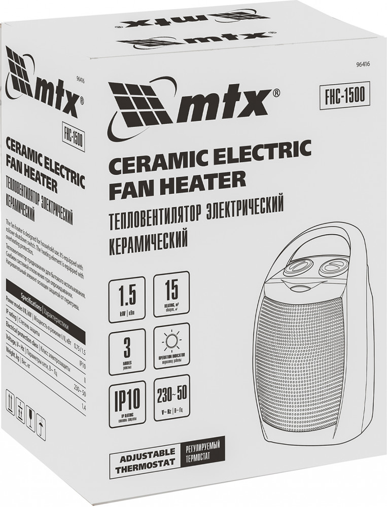Matrix MTX Тепловентилятор керамический «BHС-1500»В данный момент этот товар отсутствует в продаже. Возможно, у нас найдется аналогичный или похожий товар здесь. Тепловентилятор максимально прост в эксплуатации и чрезвычайно удобен для быстрого обогрева помещения, а небольшие габариты позволяют без труда переносить его из комнаты в комнату. Тепловентилятор позволяет регулировать мощность обогрева и температуру нагрева воздуха. |
