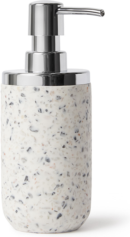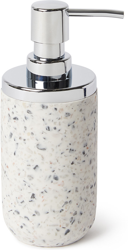Umbra Диспенсер для мылаВ данный момент этот товар отсутствует в продаже. Возможно, у нас найдется аналогичный или похожий товар здесь. Серия: Junip Диспенсер для мыла «Junip terrazzo» может стать украшением как ванной комнаты, так и кухни. Емкость представлена в утонченном дизайне, которому свойственны плавные линии и декоративная мраморная отделка. Благодаря крышке с хромированным покрытием, которую легко откручивать и закручивать, заправка диспенсера не вызывает затруднений и может быть выполнена за считанные минуты. Емкость из синтетической смолы отличается высокой прочностью и стойкостью к повреждениям. Аксессуар дополнит современный интерьер помещения. Диспенсер для жидкого мыла гармонично сочетается с другими аксессуарами коллекций «Junip terrazzo». |