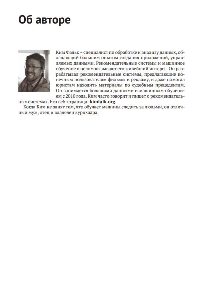 Онлайновые рекомендательные системы помогают находить в сети фильмы, работу, рестораны... и даже любовь! Опираясь на статистические и демографические данные, а также на поисковые запросы, эти системы выдают результат, интересный пользователю, — и это настоящее искусство. Научитесь создавать правильные рекомендательные системы: от них зависит успех приложения! |