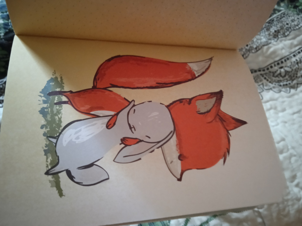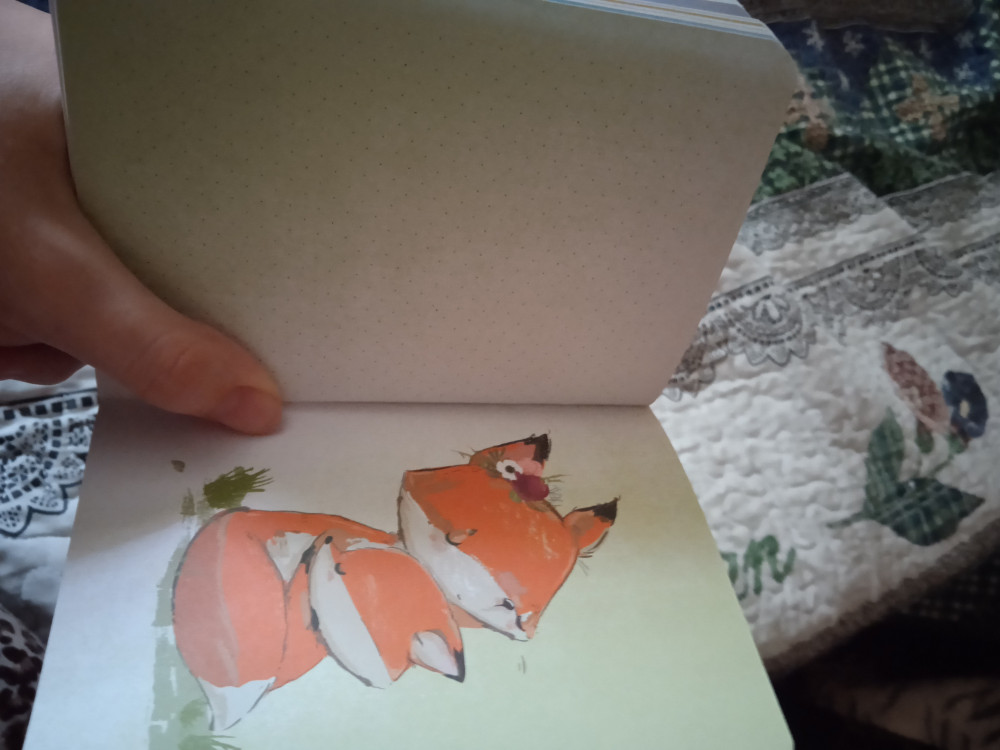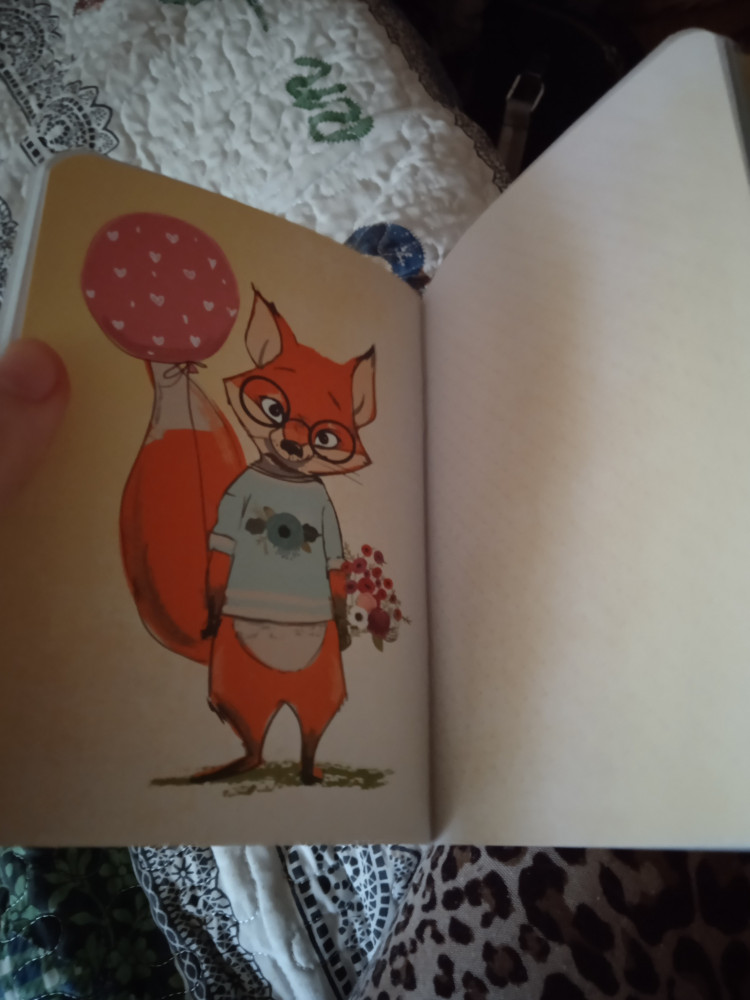Очень милый и красивый блокнотик, почти на каждой страничке красивые картинки с лисичками. Странички, как показано на фото, цветные и без линовки. Блокнотик небольшой и очень красивый, даже жалко им пользоваться. Может стать очень милым подарком для близких людей, даже надпись на обложке подходящая 🙂👍
